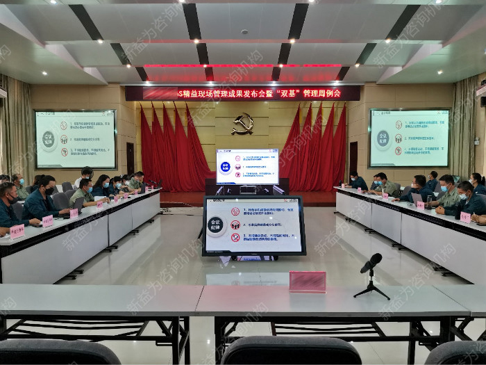 近日,某鋼鐵公司新區分公司精益現場項目第六、七、八階段總結會暨雙基管理例會在辦公樓五樓會議室召開,公司高層領導、各團隊書記、隊長、干事及新益為咨詢顧問老師參加會議。